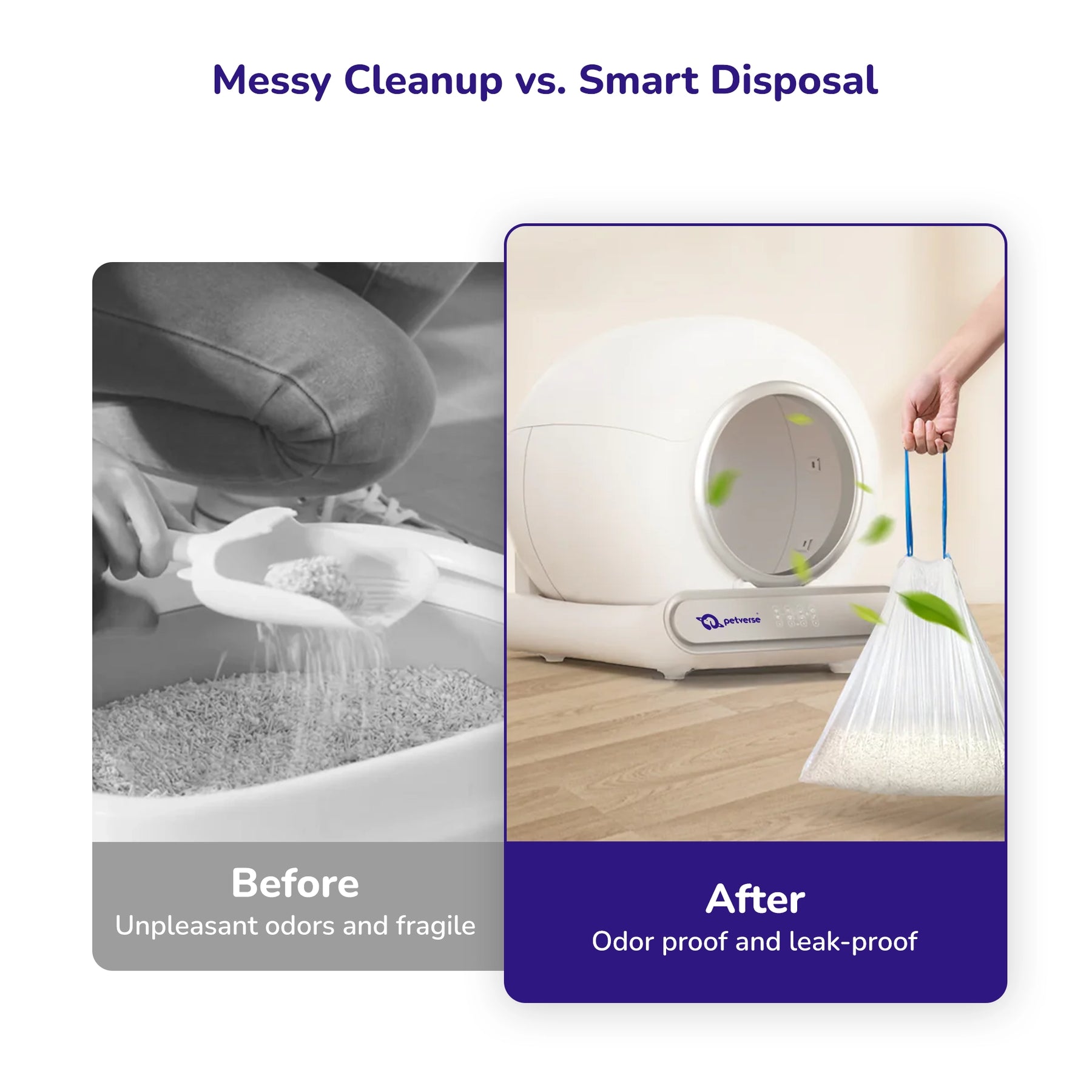 The garbage bag is designed to fit perfectly into the Smart Cat Litter Box’s waste bin. It allows hygienic and mess-free disposal of waste. Replacement is simple with a lift-and-lock mechanism.