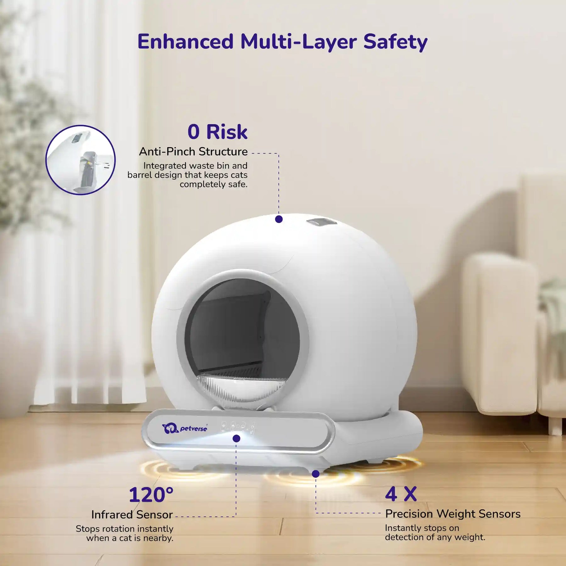 Transform everyday litter care with Petverse’s automatic self-cleaning cat litter box. Intelligent sensors, advanced odour control, and app-based monitoring work together to keep your cat’s space fresh and hygienic. Designed for multi-cat homes, it delivers hands-free cleaning with quiet, reliable performance, making modern pet care effortless.